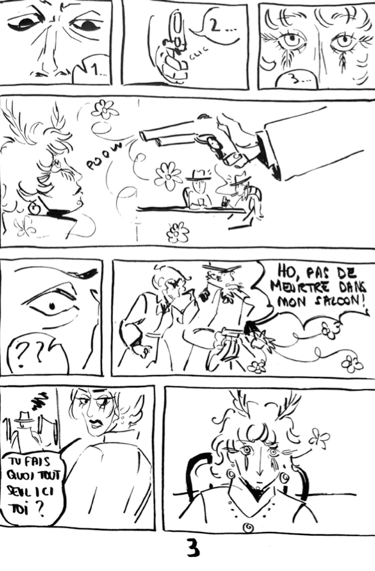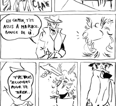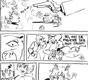 Le défi était de créer en 24 heures une mini BD de 12 pages en noir et blanc et dont l'intrigue devait se conclure par le fait d'appuyer sur quelque chose. On avait une liberté totale pour le reste.